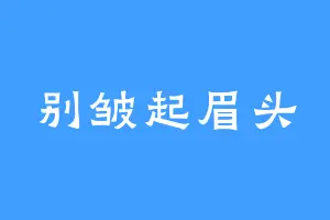 别皱起眉头